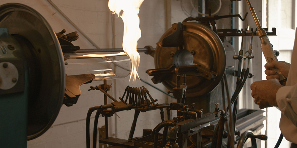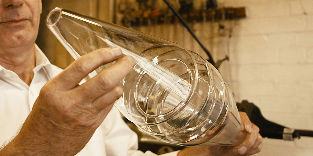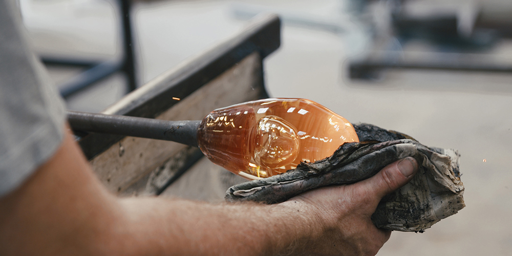 Inspired by the beautiful process of glass-blowing, the Liquid collection is manufactured in a London-based workshop by a master glassblower with 25 years of experience. The glassblowing process is one of precision, best described as a dance, where the artisan creates a rhythm between fire and bench. Made with the highest quality granular silica glass and brushed brass elements, these pieces are illuminated softly from the back.