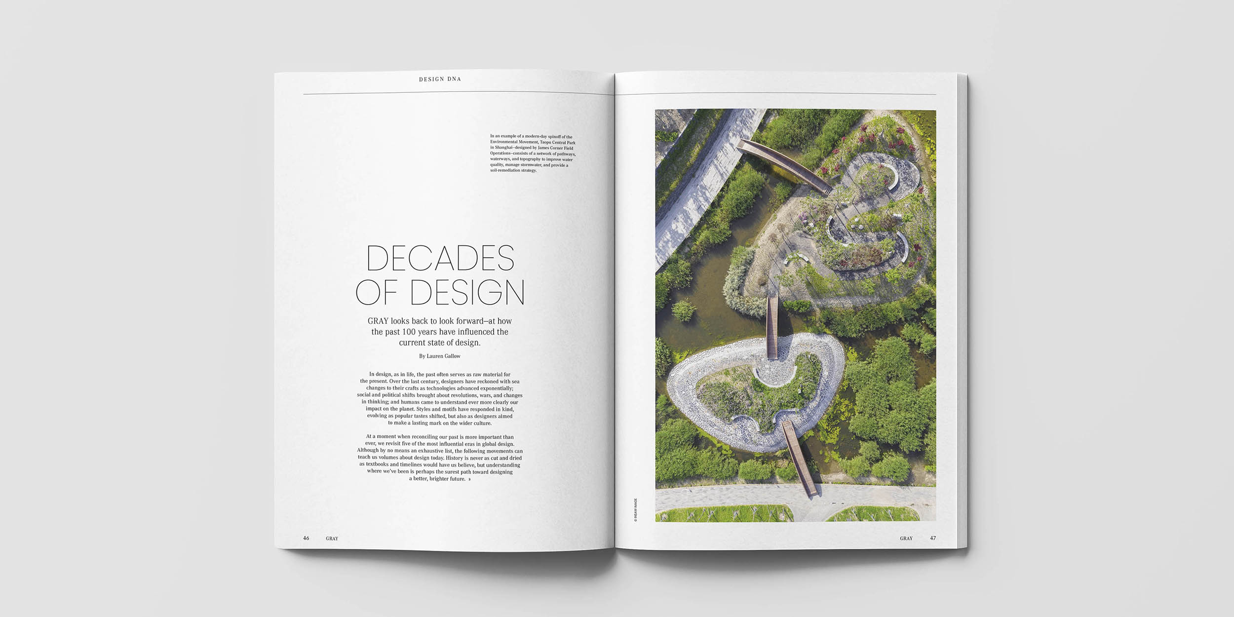 In design, as in life, the past often serves as raw material for the present. Over the last century, designers have reckoned with sea changes to their crafts as technologies advanced exponentially; social and political shifts brought about revolutions, wars, and changes in thinking; and humans came to understand ever more clearly our impact on the planet. Styles and motifs have responded in kind, evolving as popular tastes shifted, but also as designers aimed to make a lasting mark on the wider culture.
